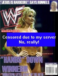 Just like since I started... 99.44% of the images (backgrounds, logos) and text on this and all my pages by Charles Cruz (who's that?) and Joel Jarrett, who gave his Paw of Approval. Chris Manetakis, John-Eric Aguilar and Charles Cruz collaborate on the World of Pro Wrestling X-Amined Page. Many cool people worked on the fake WWF Magazine, chief of which was ME.